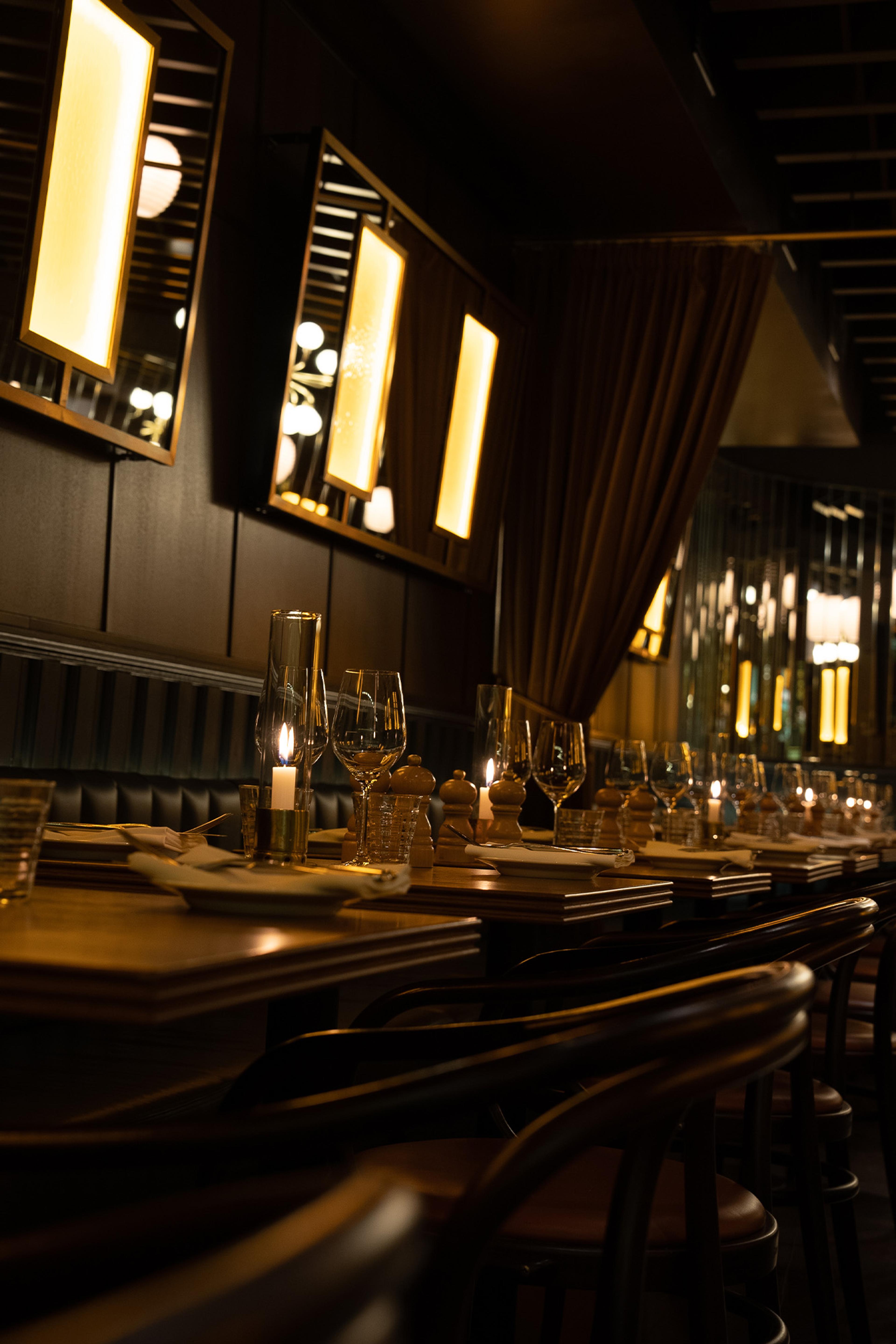 Under jorden i Södermalms kvarterskrog gömmer sig en exklusiv salong där du omsluts bortom tid. Reflektioner och skuggor dansar över väggarna och ger interiören rymd och mystik. Rummet är noggrant utformat och här finns inget mer att önska - inte ens ett fönster. En himmel nedan.