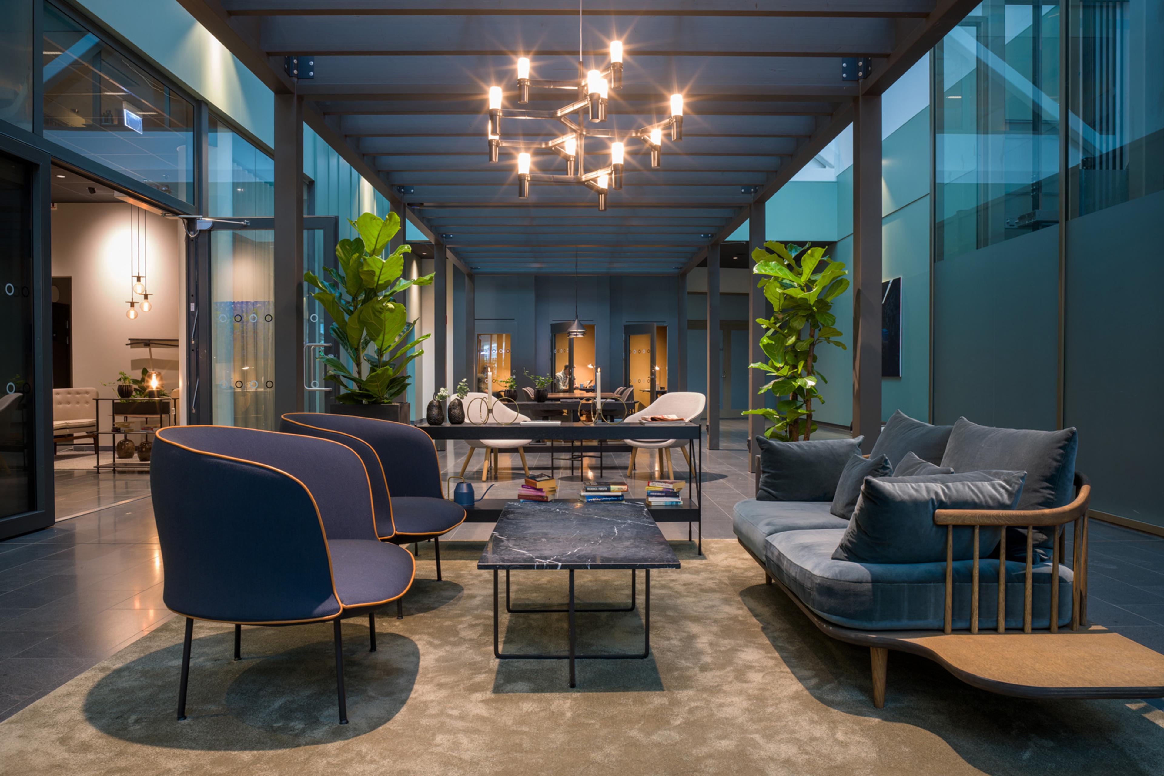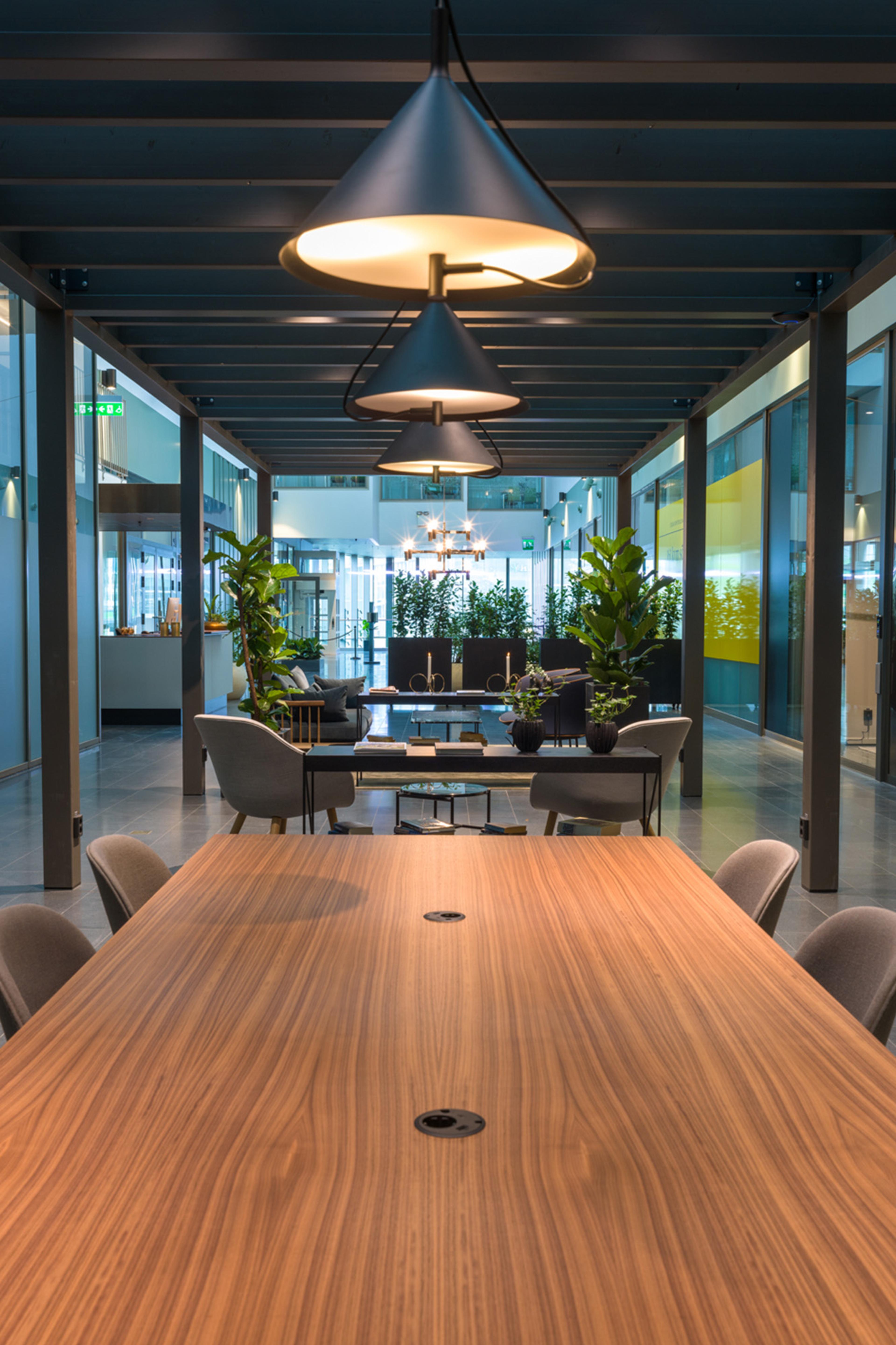 Genom återbruk och mycket begagnade produkter har Bonnier fastigheter business center skapas i Centralhusets bottenplan och volymösa ljusgård. Det är varmt, öppet och trivsamt. Rumsligheterna i gränslandet mellan den enskilda arbetsplatsen och en hotellobby ökar fastighetens värde och trivsel, med mindre miljöpåverkan.