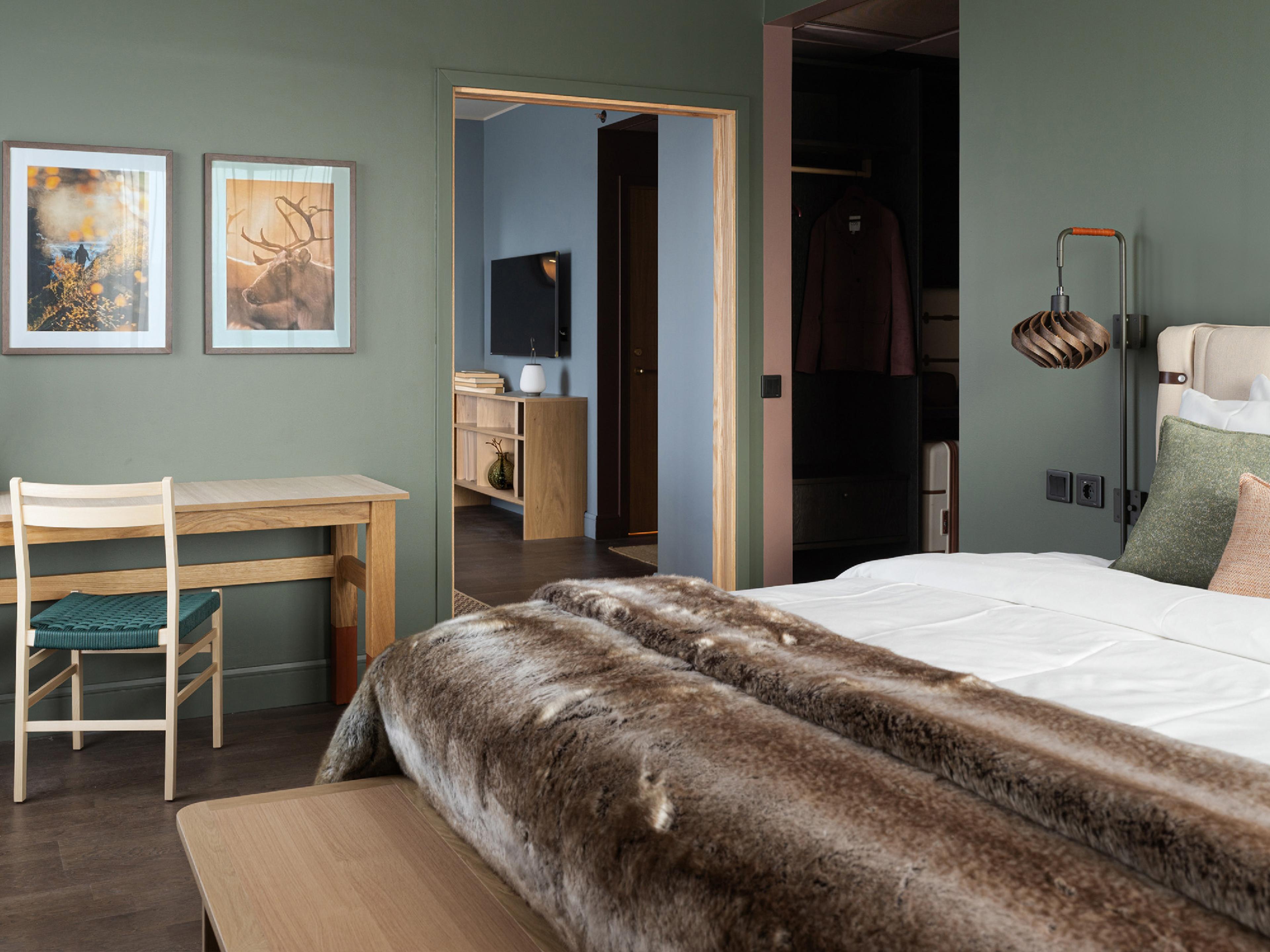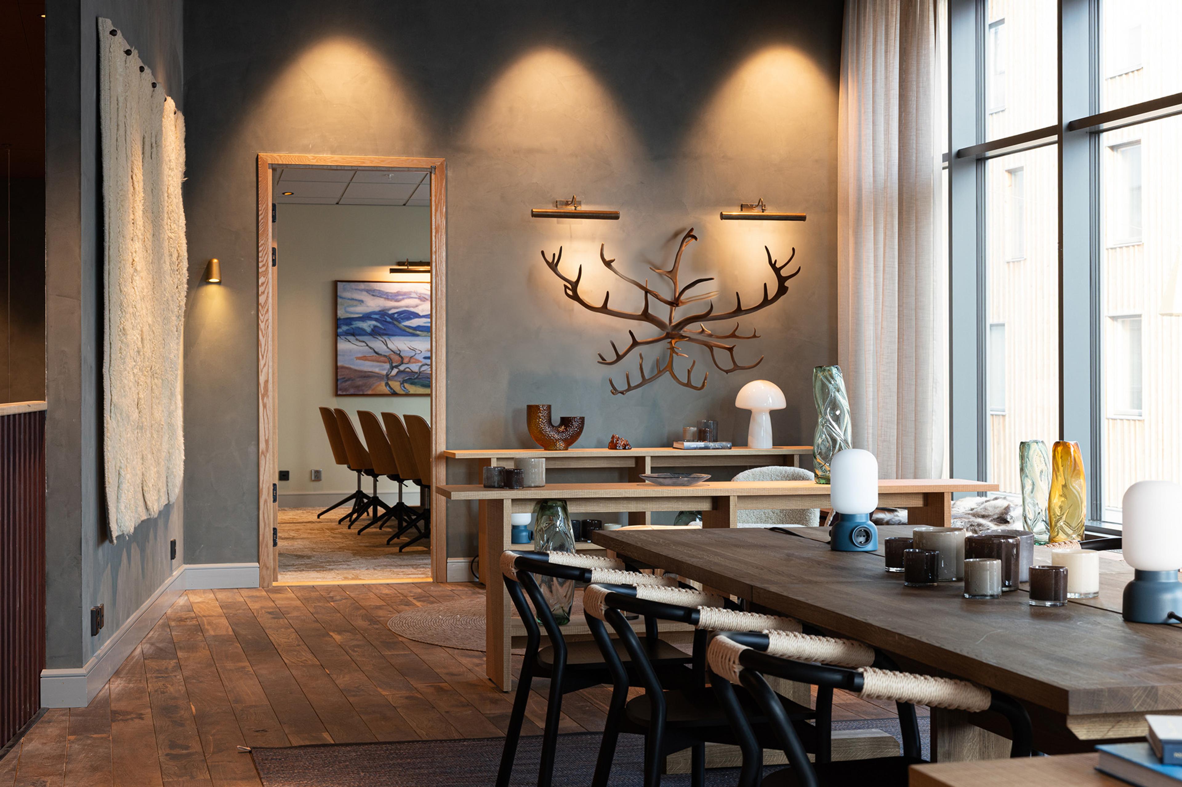 Midnattssol och malm – norrsken och snö. Hotellet mitt i kontrasternas rike. Hantverk och landskapsmåleri är inspirationskällorna vi öst ur i skapandet av hotellet. Materialen tar plats och överallt finns ytor att känna på och detaljer att upptäcka. Inredningen är verkligen en upplevelse, men missa inte att ta dig ut i det storslagna landskapet utanför. Det är därifrån allt kommer.