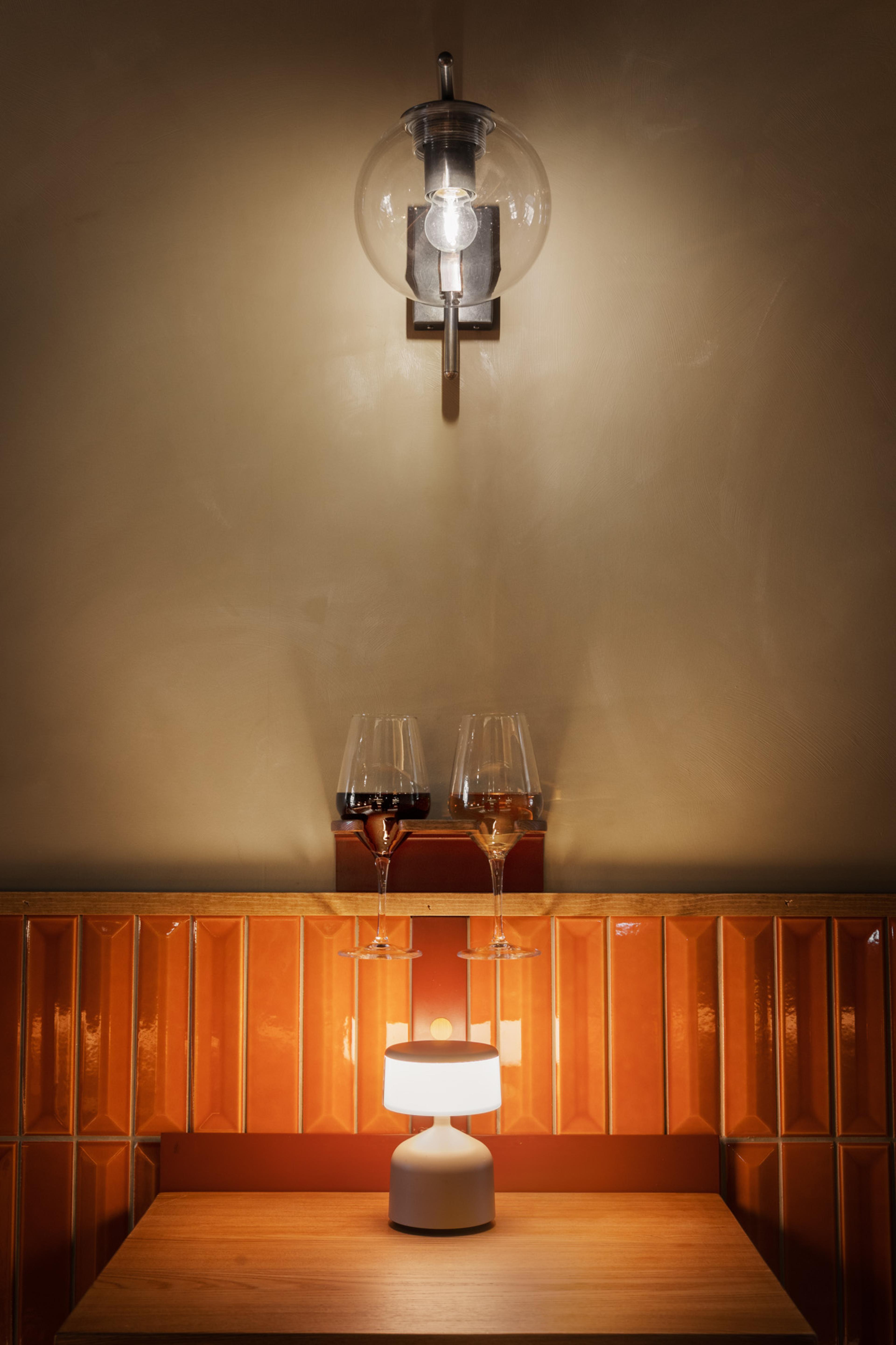 Kontinental urban bar på Rörstrandsgatan med en air av Italien. Abstrakta muralmålningar med motiv från antiken flankerar rummen mot gatan och valv på valv tar dig vidare genom många små rumsligheter. Kulörer i ett retro spektrum tillsammans med fina material skapar en enkel och skön stämning, en glimt av södra Europa.